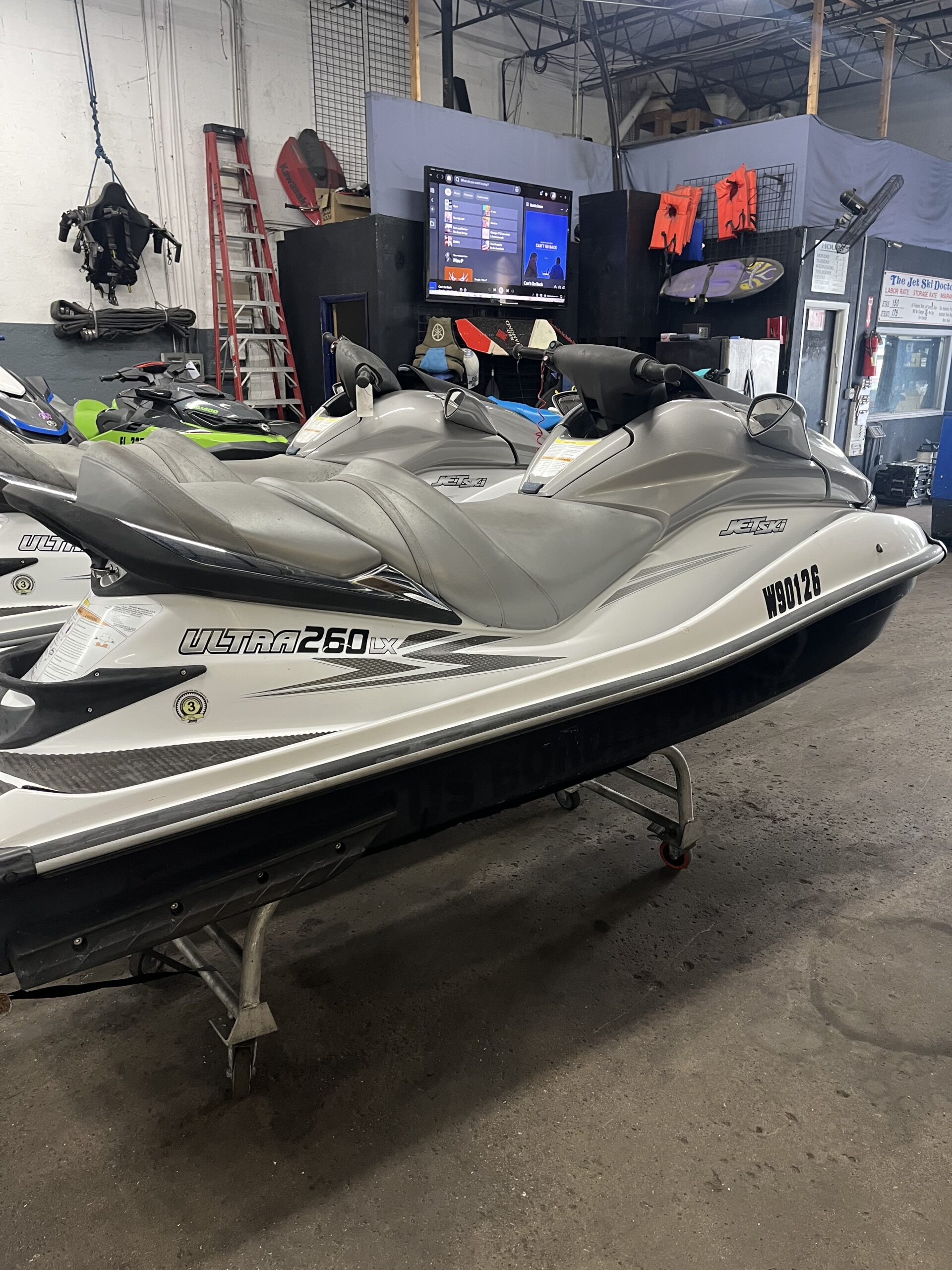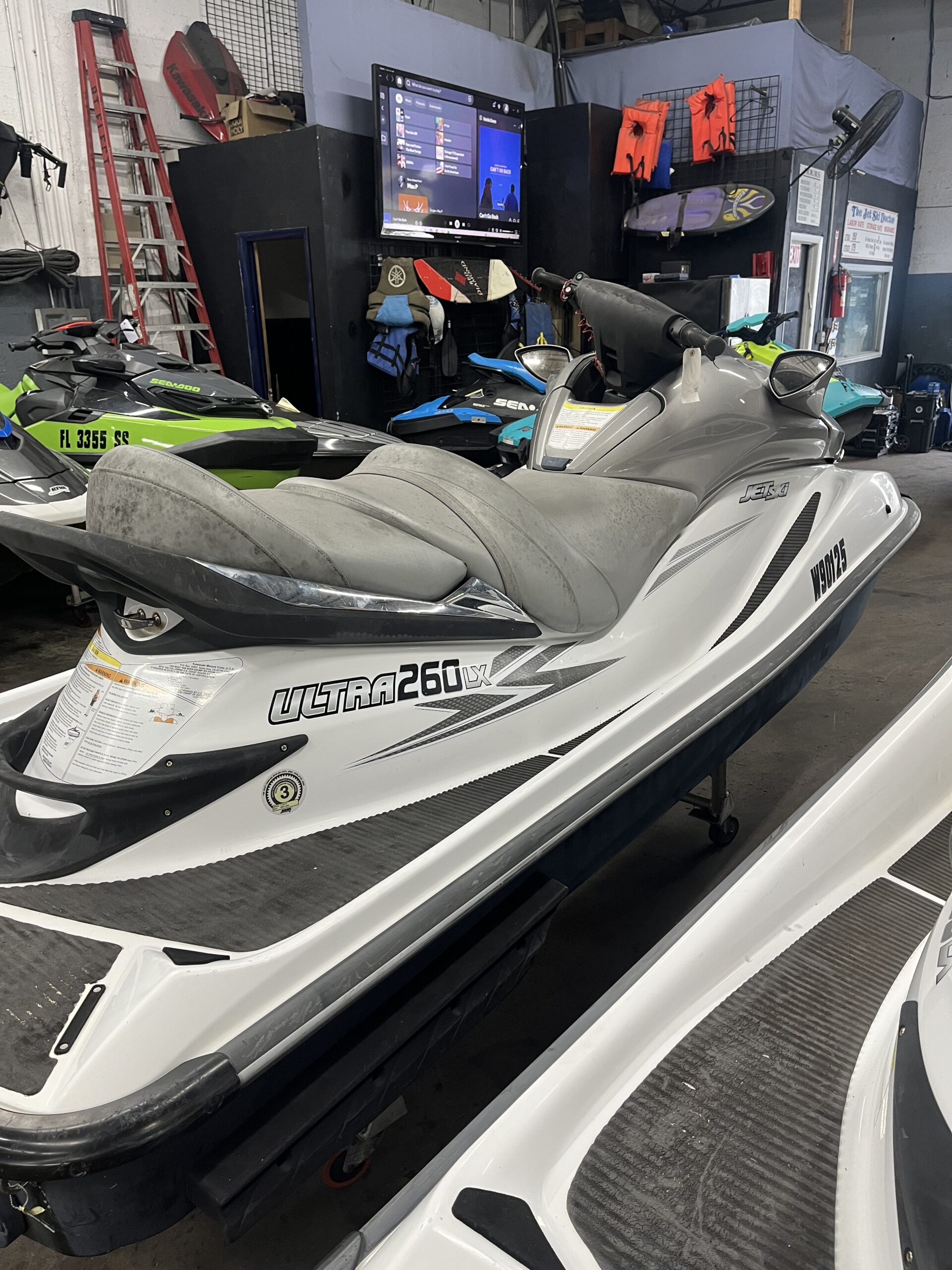 The Jet Ski Doctor currently has two 2009 Kawasaki Ultra 260LX jet skis for sale in South Florida, fully serviced and ready for the water. These high-performance 260HP supercharged Kawasaki jet skis are known for their power, stability, and reliability, making them ideal for both ocean riding and intracoastal cruising.